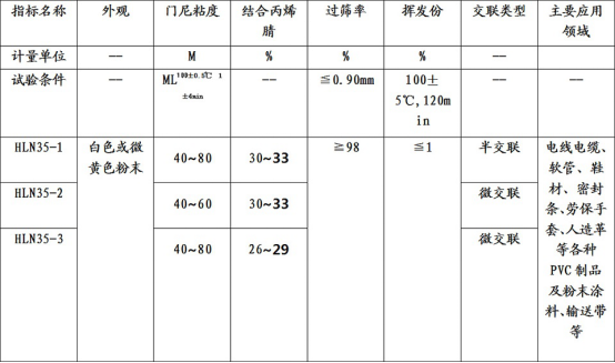 HLN35 series powdered nitrile rubber product index